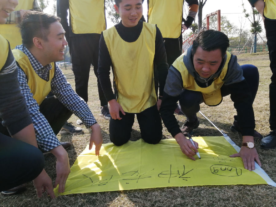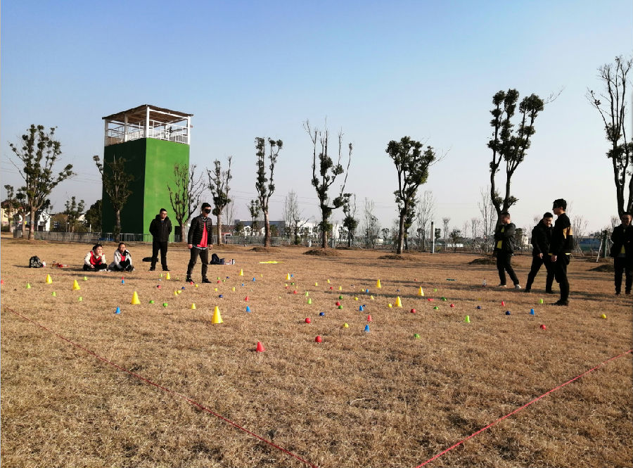 4、下午2點教練安排的熱身小游戲再一次激發了我們參與的熱情。接著我們挑戰了第二個活動項目--《沙場點兵》,此項目主要培養建立小組成員的相互信任;促進溝通與交流;體會信息傳達準確與否直接影響團隊計劃的實施;要有好的團隊策劃方案,更要有好的執行力;在激烈競爭中獲勝,很大程度取決于團隊領導的組織協調能力。